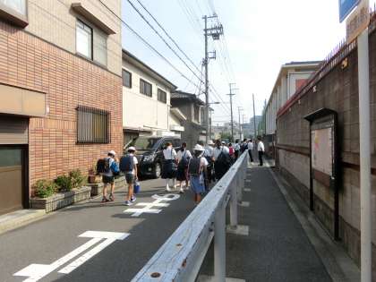 太陽が容赦なく照りつける中、児童さん・生徒たちが登校しています。