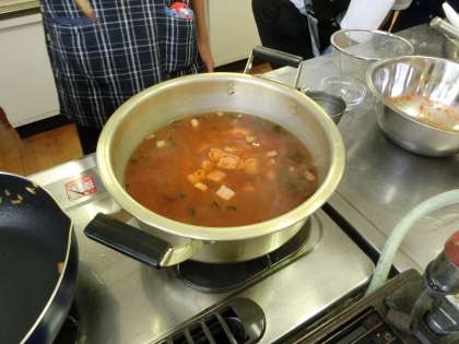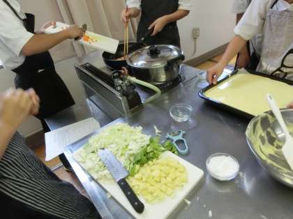 班で役割分担し、調理と同時に、洗い物や片付け、机の上をきれいにし、テキパキ進めることが大切です。