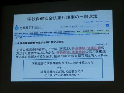 各校の養護教諭の先生方が結集し、大阪市立大学の先生から「成長曲線」を中心としたお話を伺いました。