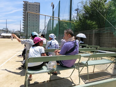 炎天下の中、保護者の皆様も熱心に、声援を送っていただいています。