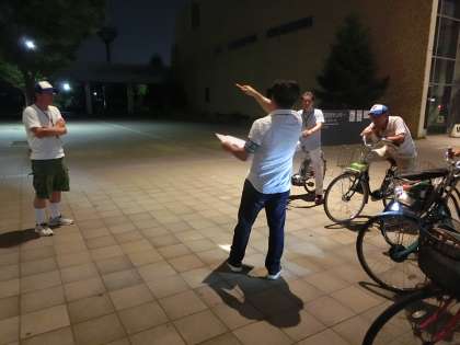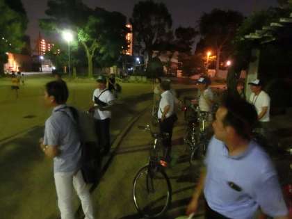 夜の公園は、昼間の暑さを避けて遊んでいる家族連れも多く、うちわを配りながら、早く帰宅すること、被害にあわないよう声かけをしました。