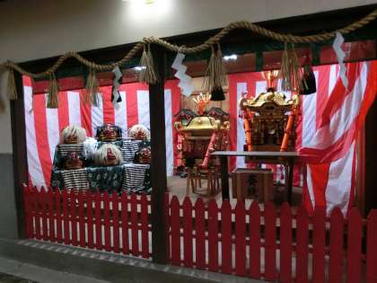 神輿が飾られています。明日の宮入りが楽しみですね。