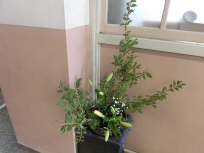 本日、地域ボランティアの方に、校長室と事務室前に、お花を活けていただきました。