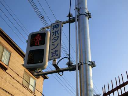 学校南西角の信号機。新しく付け替えられました。