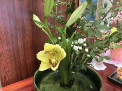 体育館前の花、そして生け花。