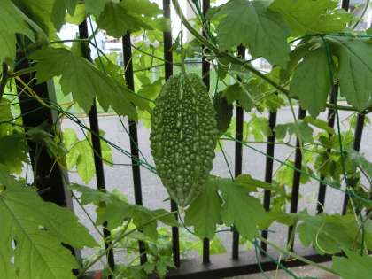 強烈な風雨の中、夏野菜が絶えてくれました。