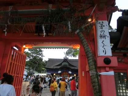 大きな「茅の輪」をくぐり、まずは、けがれを落とします。