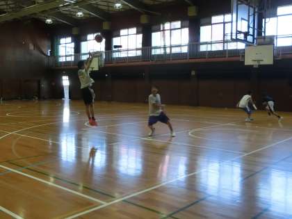 そのような中、男子バスケットボール部が練習しています。