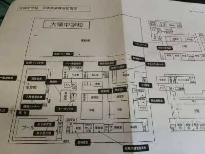 体育館は、一般避難者の待機場所となり、傷病者室は和室、マタニティルームは格技室、ベビールームは図書室、救護所は保健室となります。