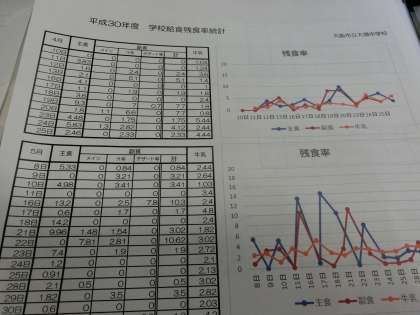 みんな良く食べてくれて、残食率のまとめは、主食(ご飯・パン)が4.56%、副食(おかず・デザート)が3.8%、そして牛乳が3.13%でした。