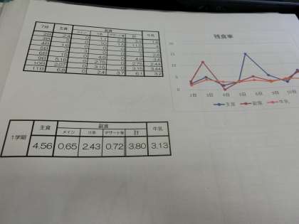 一学期の親子給食の残食率統計が出ました。