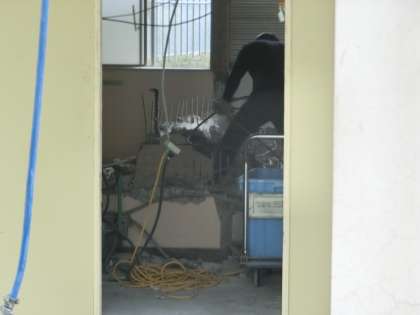 本日も、とても元気よく、トイレ改修工事の作業員さんたちが働いてくれています。