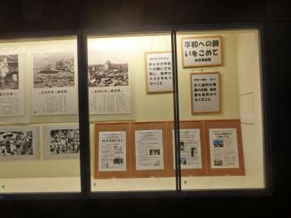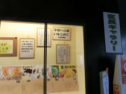 昨日は終戦の日。センターのギャラリーには、反戦平和に向けて、戦争と日本国憲法についてパネル展示がありました。