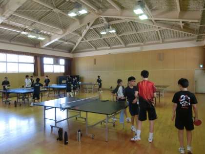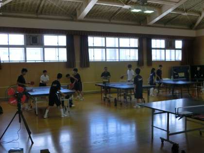 格技室では、卓球部が汗を流しています。