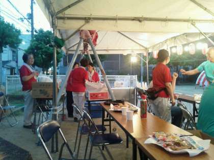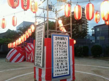 学校のすぐ近く、南万領公園で、恒例の盆踊りが行われています。