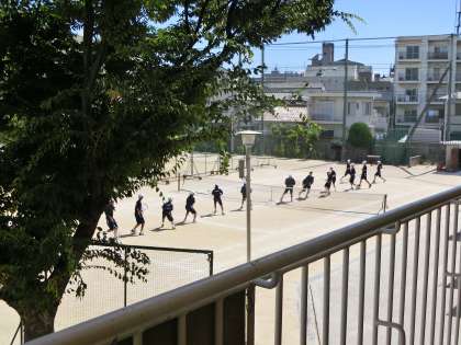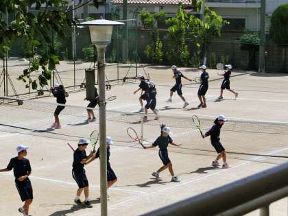 テニス部が、炎天下の中、頑張っています。