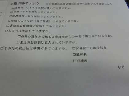夏休みのしおりの記入や、保護者の皆様の一言など、忘れないようにお願いします。