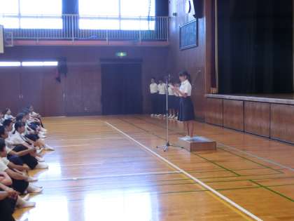 今週は、水泳大会、チャレンジテスト、課題テスト、身体測定、職場体験学習と、行事が盛りだくさんです。ただ、台風の接近があり、予定変更の可能性もあります。台風には十分注意してください。