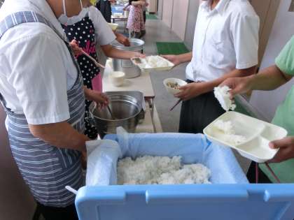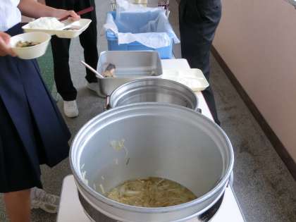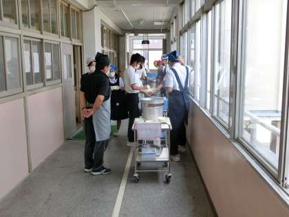 4時間目の授業が終了し、給食の配膳が始まりました。