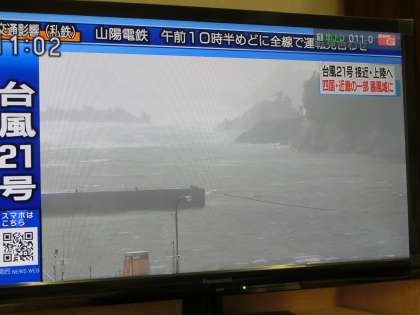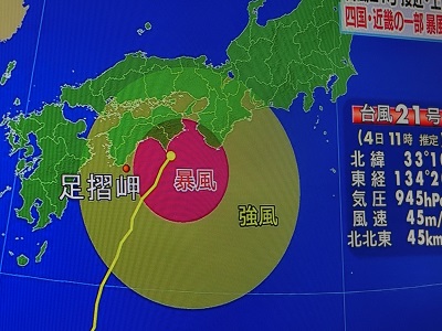 台風の上陸は、室戸岬か徳島付近、淡路島あたりでしょうか。