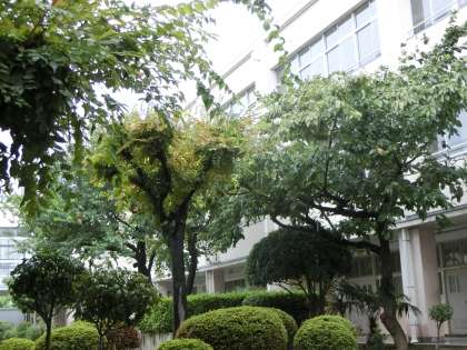 中庭の木々たち。何とか耐えてもらいたいと思います。