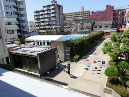 台風の被害で、使用できなくなったプール。