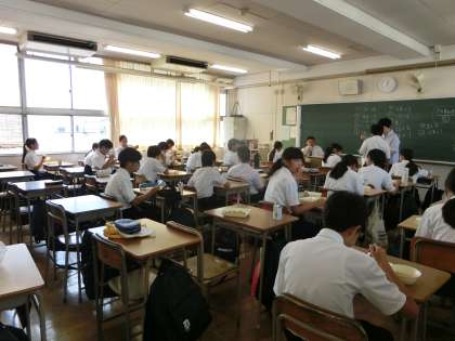 本日のメニューは、「親子どんぶり」「冬瓜のすまし汁」「金時豆の煮物」です。