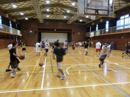 体育館ではバスケットボール部が練習をしています。