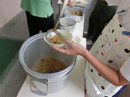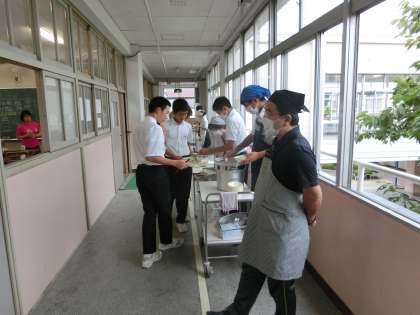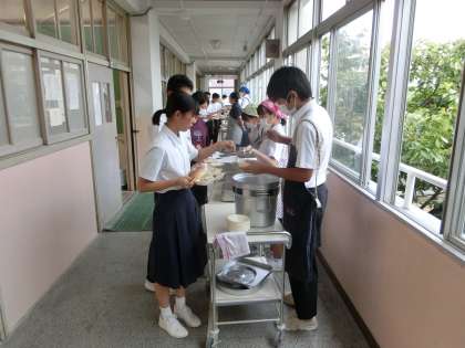温かい給食を食べることができる。感謝して、味わいましょう!