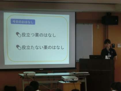 本校薬剤師の芳川様から、薬の基本よりお話をいただきました。