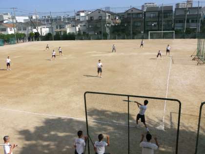 ソフトボールの授業。今日は試合形式です。
