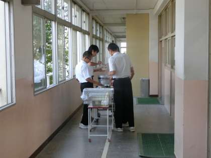 お代りに群がる男子生徒たち。