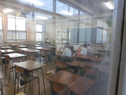 校舎では、家庭科部、吹奏楽部が活動しています。