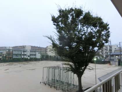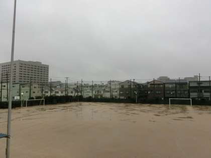 激しく雨が降ったようで、水はけの良いグラウンドも、水浸し・・・。
