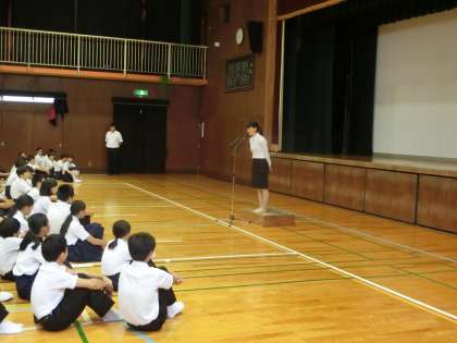 秋の交通安全週間についてのお話と、教育実習生のお礼と、お別れの言葉がありました。