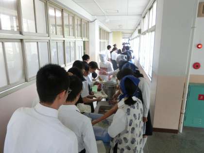 本日のメニューは、「ビーフカレーライス」「一口ヒレカツ」「きゅうりのピクルス」「白桃」です。