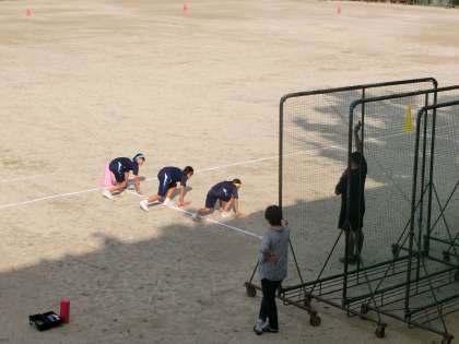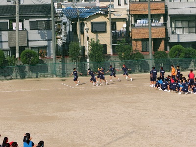 続いて、グラウンドで「全員リレー」です。
