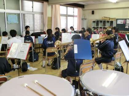 全体が演奏するためには、音楽室の机椅子の出し入れから。