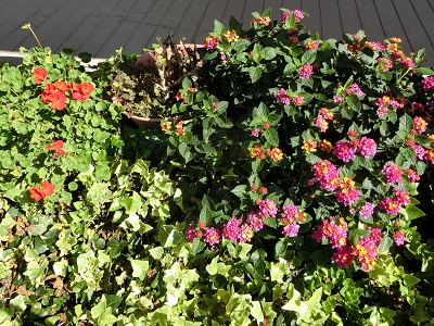 台風の風雨で疲れ果てた学校の草花も、元気が出てきたようです。