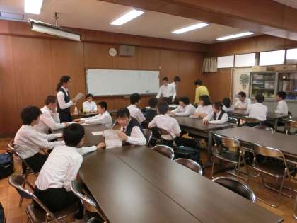 新会長就任のあいさつのあと、各クラスの学級代表と各種委員会の委員長たちが、審議を深めました。