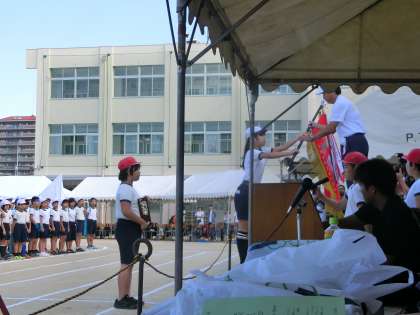 優勝旗返還・児童宣誓・準備運動