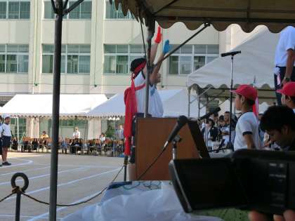 昨年の覇者、白組から優勝旗が返還、力強い児童宣誓と続きました。