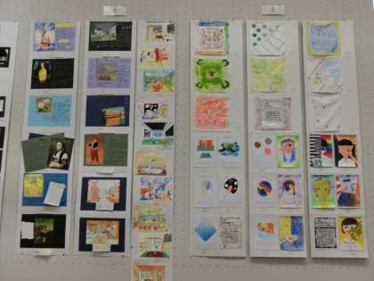 画用紙の平面図だけでなく、布地や立体の作品も。