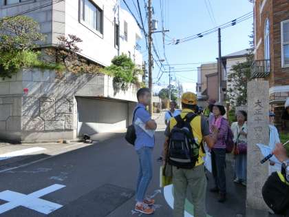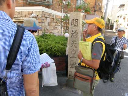 坂の広がる帝塚山。その一角にも、明治天皇の来阪の石碑が。