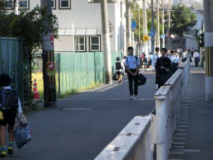 爽やかな風が吹き抜ける中、児童さん、生徒たちが登校してきました。