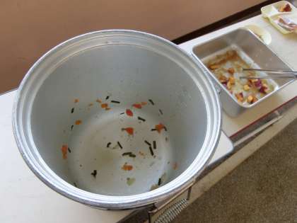 おかずの「中華煮」の量が少なく、分配が難しかったようです。