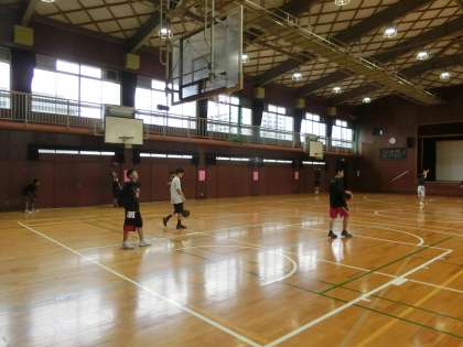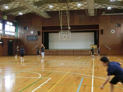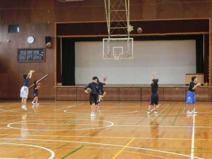 今朝もバスケットボール部が練習しています。
