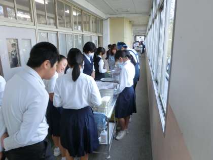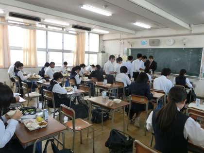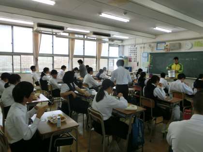 今日のメニューは「茄子のミートグラタン」「鶏肉と野菜のスープ」「みかん」でした。