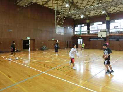 今朝もバスケット部が早起きして、シュート練習を行っています。