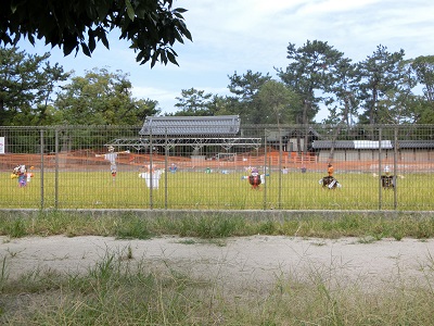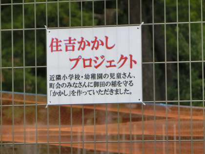 住吉大社の、稲穂が実った御田に、小学生の作った「かかし」が登場しました。